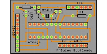 Right so now we all have an Arduino that we can play with, some may have a true blue one; others may have built my KMDuino. Our next step is to start building something useable. A handy little shield (working modules that fit on top or stack are called shields) to have in your goody box is a Bootloader. If you purchase blank Atmega 328P chips and want to load them, this will make it a piece of cake.